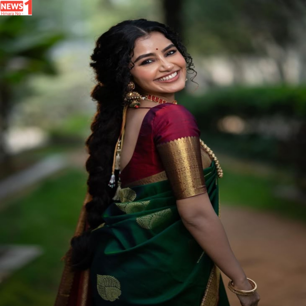 पल्लू के किनारे को हल्के हाथ से थामना बेहद खूबसूरत लगता है। यह पोज़ ड्रामेटिक टच देता है और साड़ी के डिज़ाइन को हाईलाइट करता है। आप हाथ की पोज़िशन बदलकर एक्सपेरिमेंट कर सकती हैं—एक हाथ कमर पर और दूसरा पल्लू थामे, बेहद रॉयल लुक देता है।