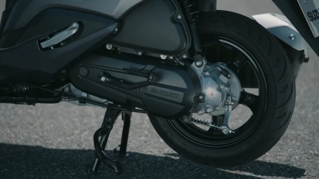भारतीय सड़कों को ध्यान में रखते हुए Suzuki ने Burgman में बेहतरीन सस्पेंशन सेट-अप दिया है। आगे की तरफ टेलिस्कोपिक सस्पेंशन और पीछे की तरफ हाइड्रोलिक शॉक एब्जॉर्बर मिलता है, जो खराब रास्तों पर भी आरामदायक राइड का अनुभव देता है।